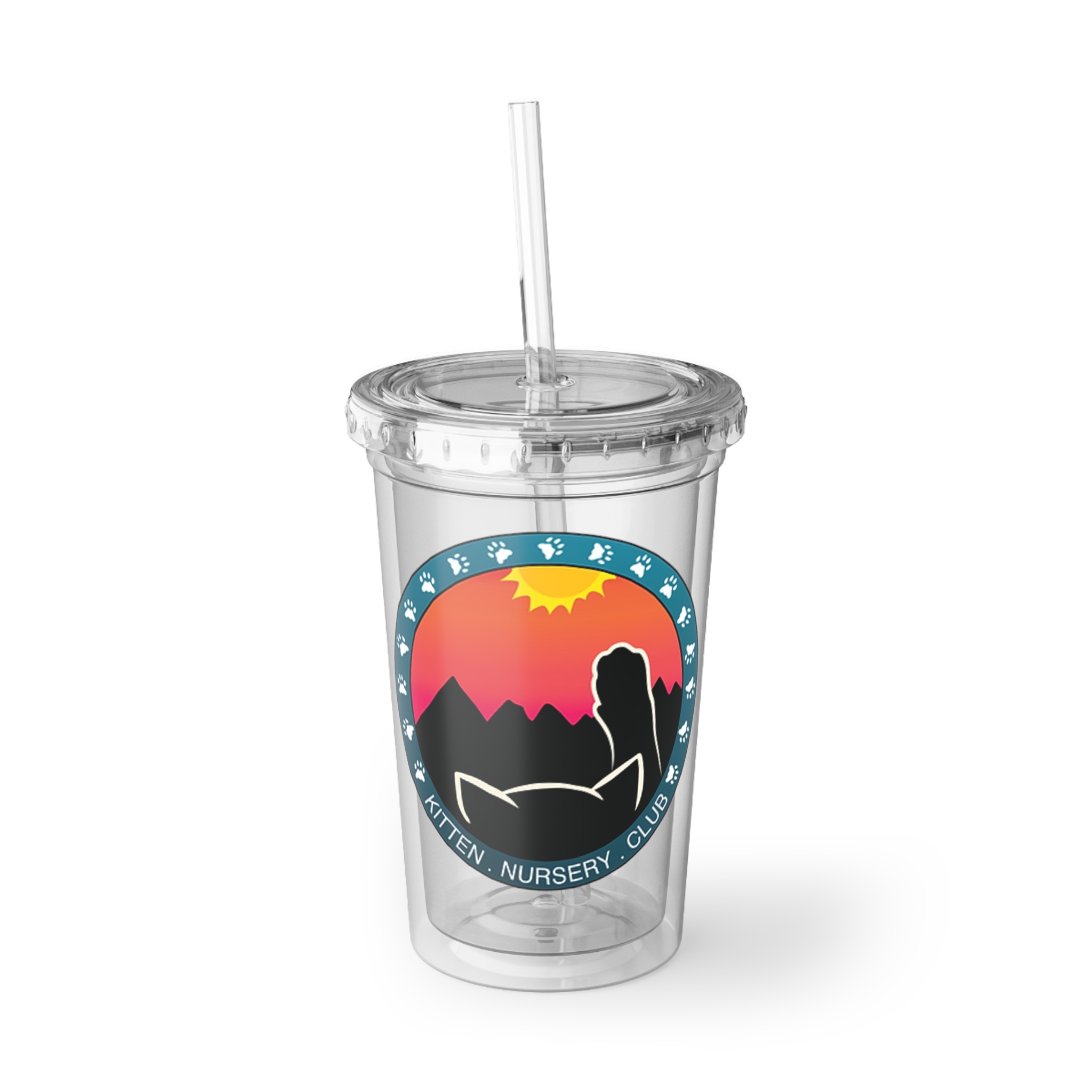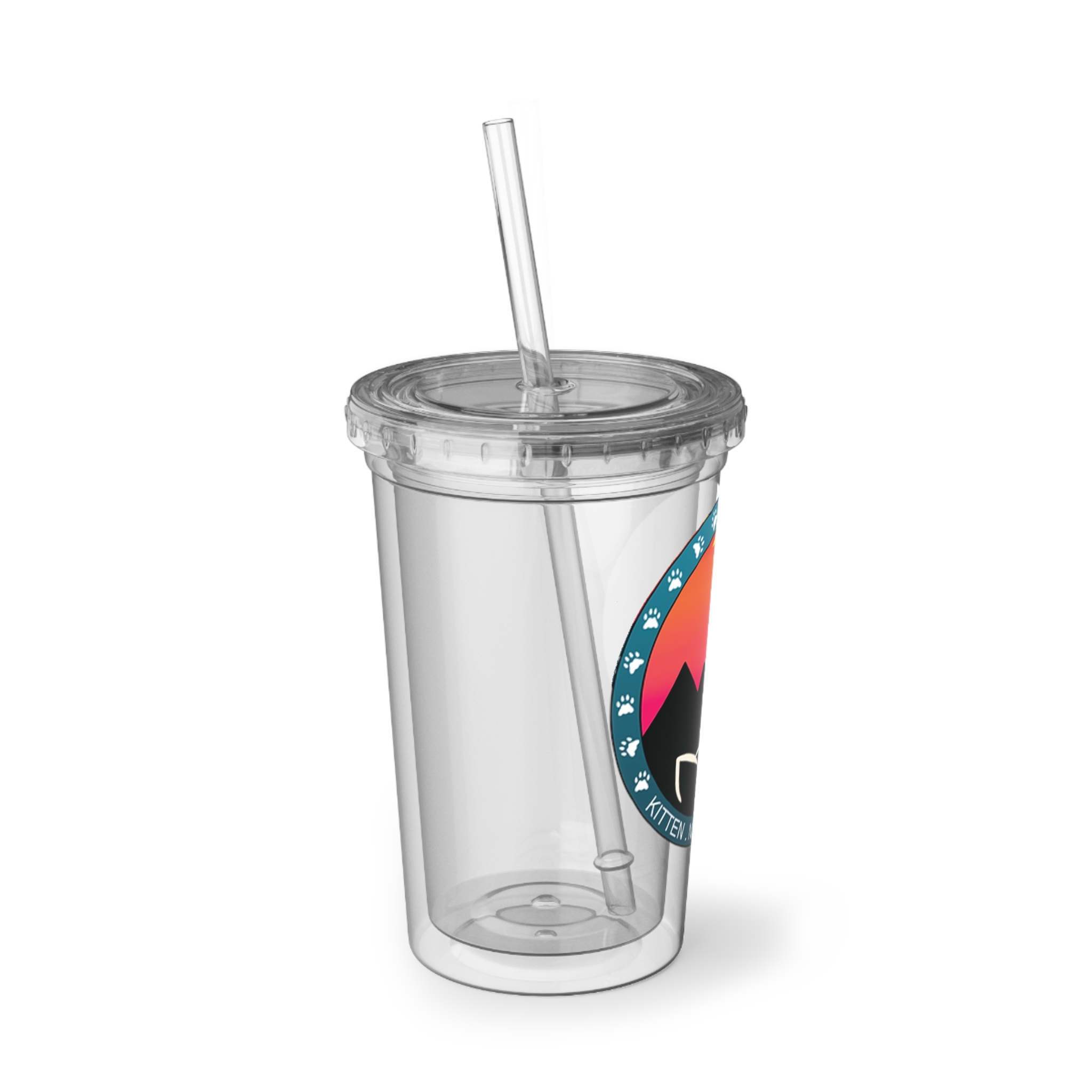 Clear double-wall acrylic tumbler with a playful, sunset-themed badge design—made for people who carry summer vibes wherever they go. The sturdy 16oz cup holds iced coffees, smoothies, or springtime mocktails without sweating through your bag. Its crisp printed artwork pops against the transparent walls, and the included lid and straw make sipping on the move simple. Lightweight and BPA-free, this tumbler slips into daily routines: morning commutes, park hangs, classroom prep, or long car rides to weekend markets. It feels cheerful in your hands and keeps beverages at the right temperature long enough to enjoy the moment.